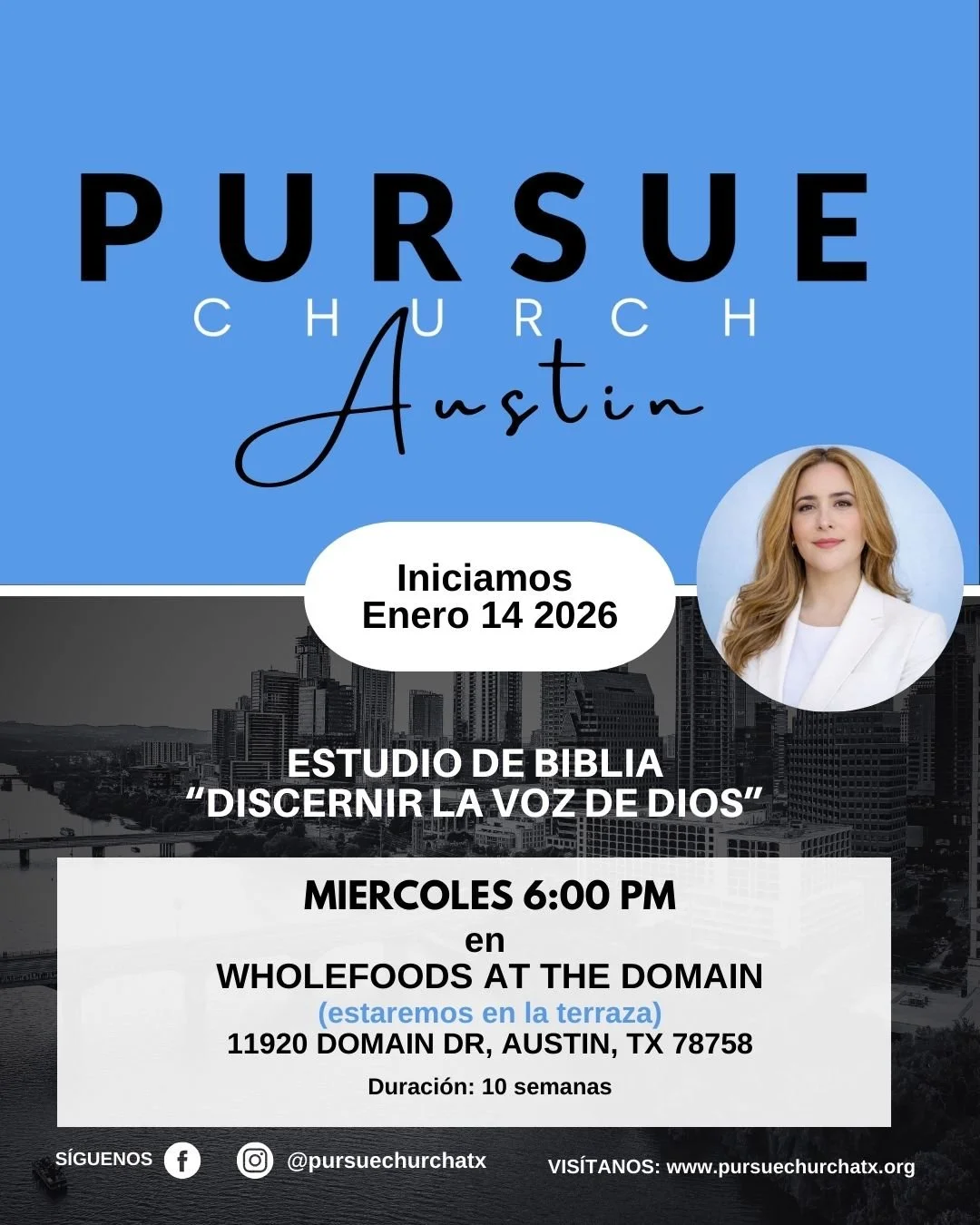¡Queremos invitarte con mucho cariño a nuestro estudio bíblico para mujeres de Pursue Church! Cada miércoles nos reunimos para crecer en nuestra fe, compartir testimonios y apoyarnos unas a otras en este hermoso camino con Dios.